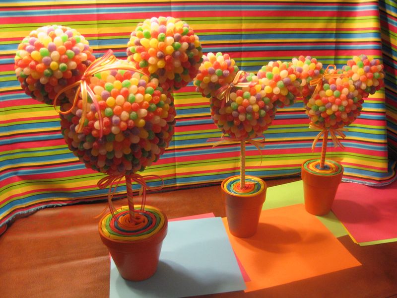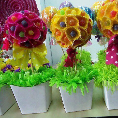 Topiaria com jujubas e forminhas de docinhos, simples e lindo(Daqui)!
