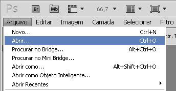 Para começar clique em arquivo e depois em abrir para escolher a imagem que você deseja trabalhar.