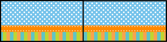 Agua/refri listras e poas azul, laranja e verde