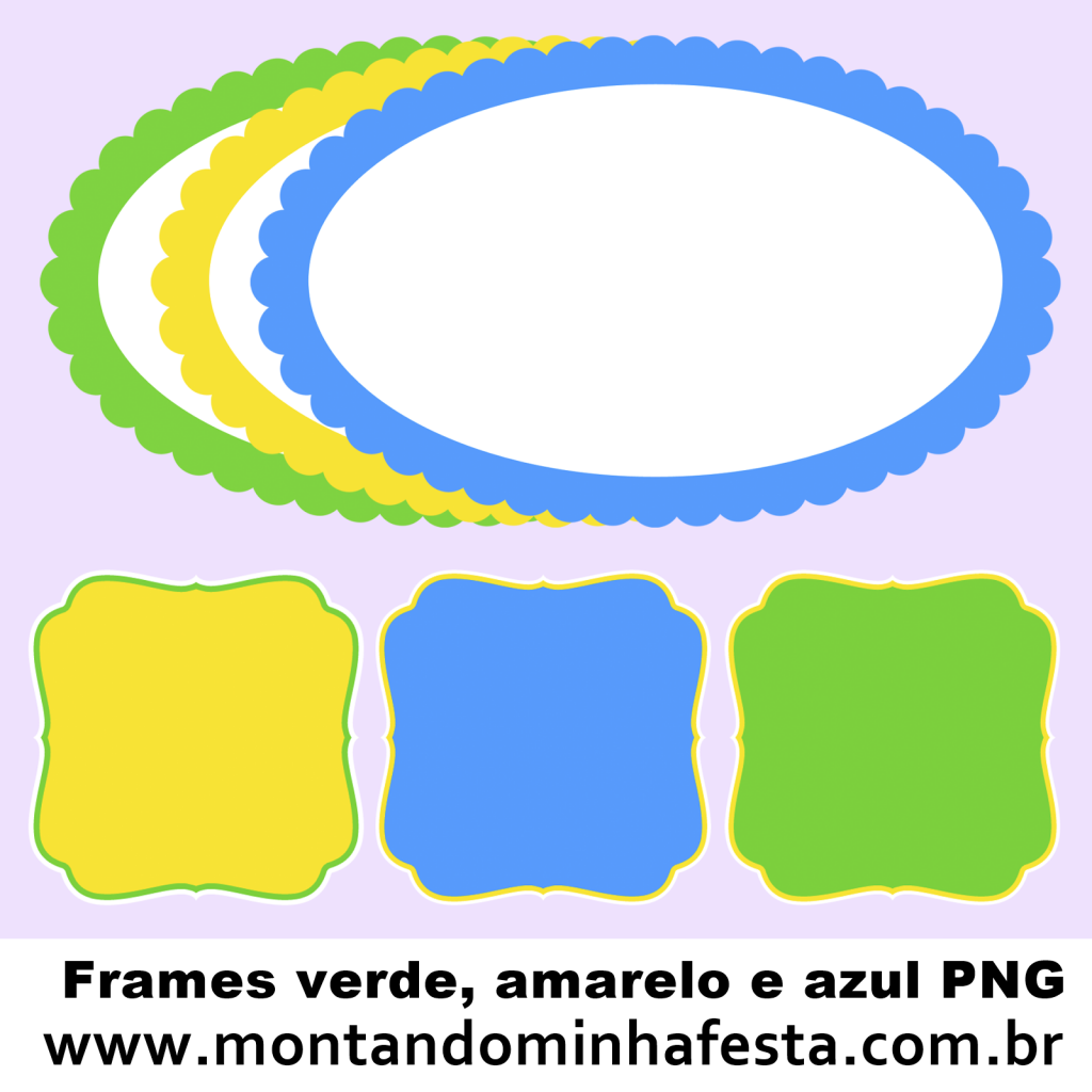 Baixe e use agora mesmo os frames verde, amarelo, azul em png para criar lindos personalizados para sua festa! Veja